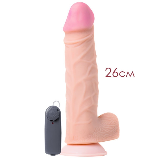 Большой реалистичный фаллос-вибратор с выносным пультом управления вибрациями.
